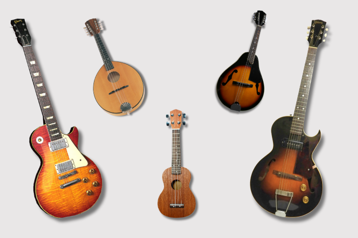 You’ll discover iconic brands like Gibson, Fender, Martin, Gretsch, Rickenbacker, and Ibanez.